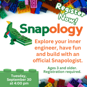 - October 28: LEGO® Club! Listen to a story and build your own creation. All ages.