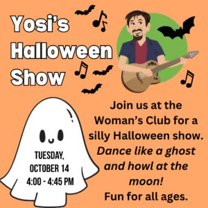Join us at the Little Silver Woman’s Club for a silly Halloween Show! All ages are welcome to dance like a ghost and howl at the moon. Watch out for bats, black cats, and a wild pumpkin patch!