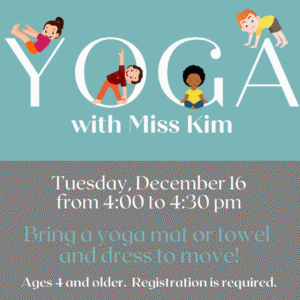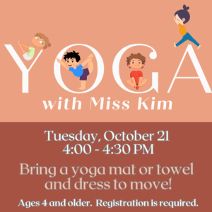 Registration is not required for weekly programs, unless specified for special events, such as Yoga with Miss Kim.