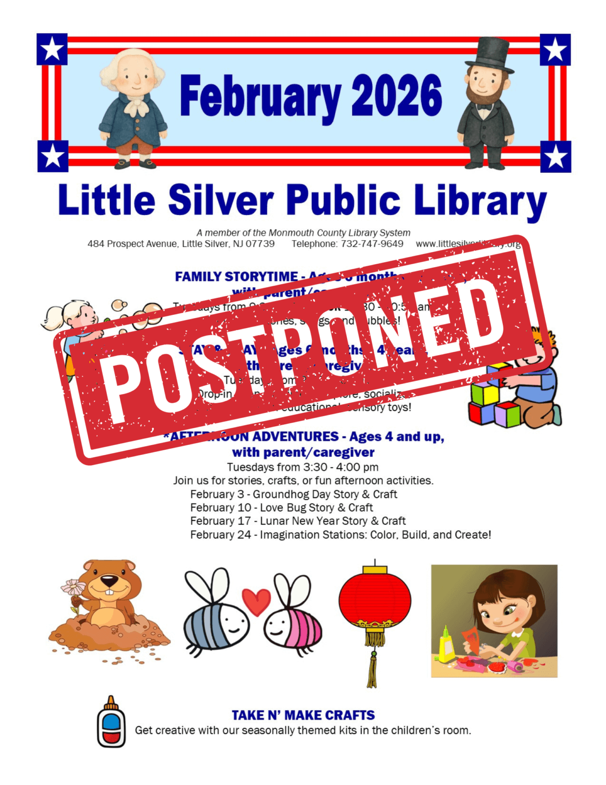 Our newsletter is sent monthly and includes monthly events , special programs, and closings.