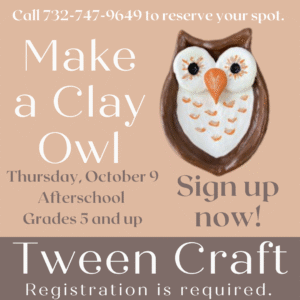 Some of our programs, like this one, have limited space and require registration. You may register in the library or by calling us at 732-747-9649 (please do not email).